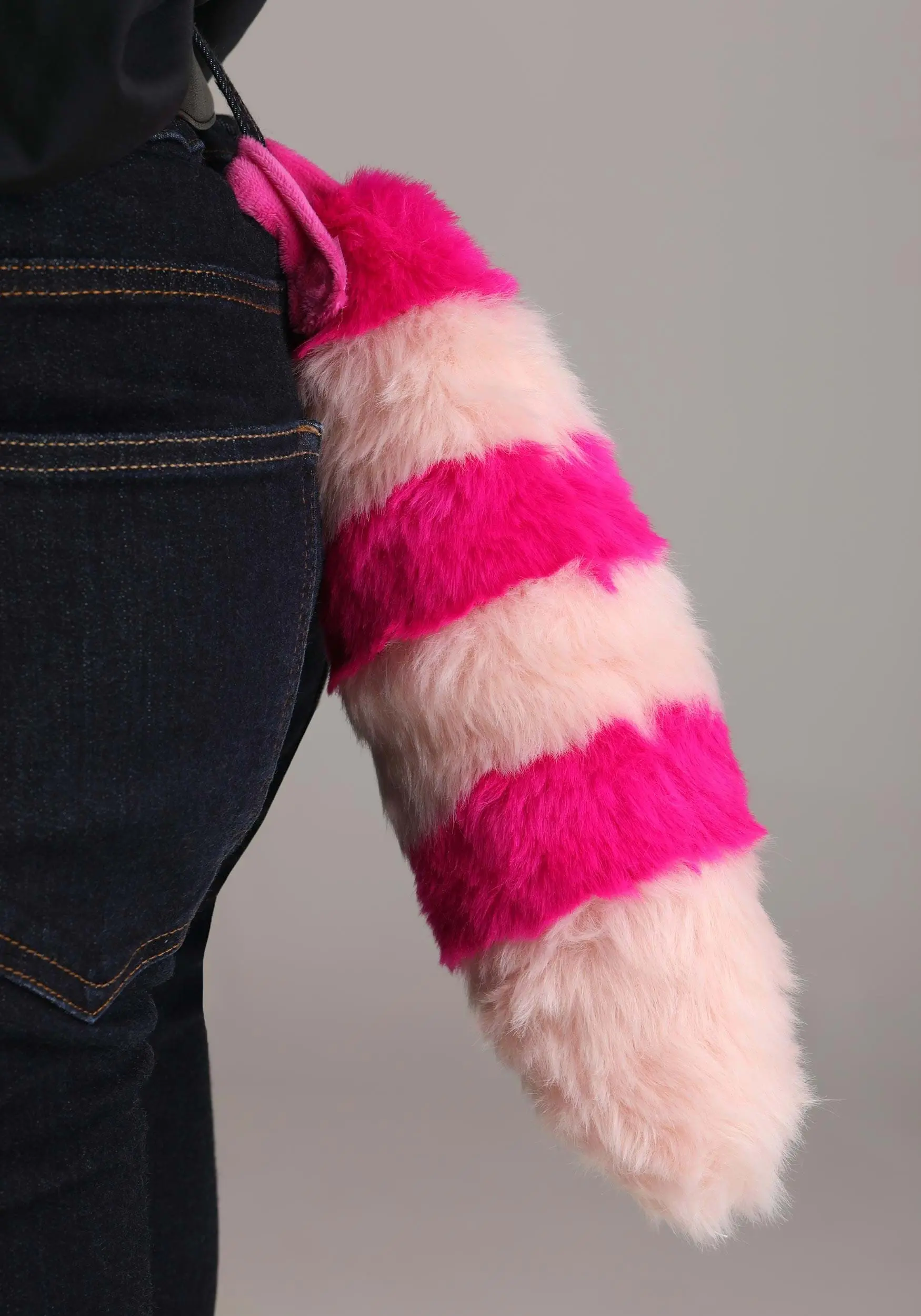 Be the coolest (and craziest!) cat around in this officially licensed Disney Cheshire Cat Plush Headband and Tail Kit! The exclusive kit includes a fuzzy pink headband with the wide eyes and even wider smile of Disney’s most famous cat embroidered on it. A fluffy striped tail attaches to your pants and swishes sassily with your every move.Â