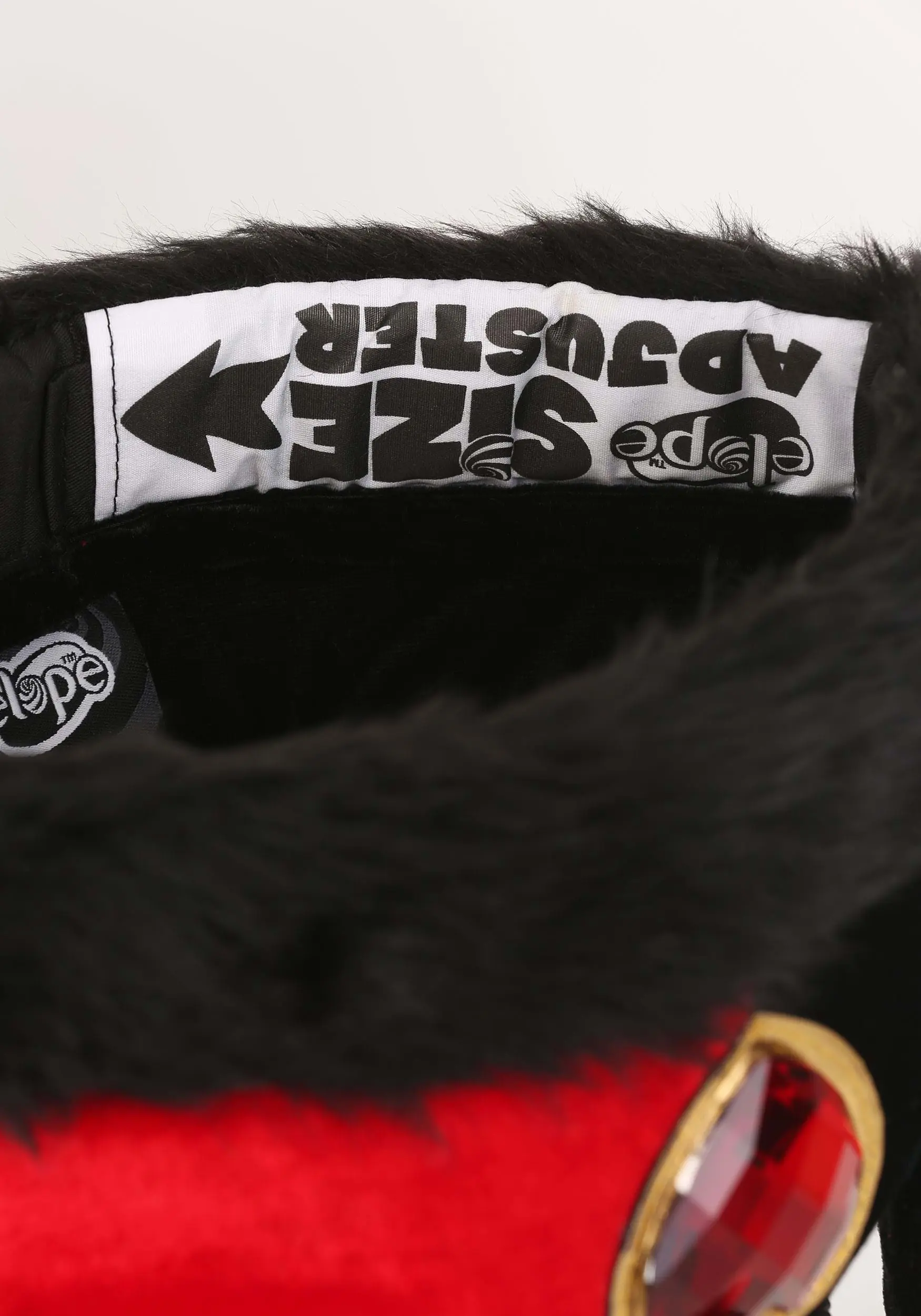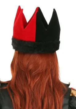 This cozy crown is a great way to add a cozy touch to the cold Queen of Hearts ensemble. It has a soft red and black base that’s trimmed with black faux fur. A sparkling red heart jewel is attached to the front for a royal sparkling touch. The size adjuster on the interior allows this crown to be lent out after you decide to pass on the crown.