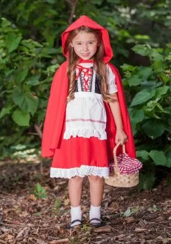 Now we don’t recommend buying out our entire stock of this costume for your child like Red’s mother. (Although we wouldn’t be complaining!) The lesson of this story is that your little girl will look and feel fantastic in this deluxe child Little Red Riding Hood costume. It just may be the costume that she wants to wear every Halloween. The beautiful red dress is styled as a vest, skirt, and apron over a white peasant-style blouse. The black velvet vest has a back zipper and ribbon lacing at the front. The costume also comes with a knee-length hooded cape that fastens with a Hook and Loop fastener tab at the neck.
