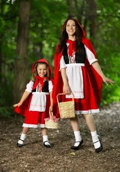 Now you can be your favorite storybook character when you wear this Plus Size Little Red Riding Hood Costume. This deluxe Red Riding Hood costume comes with everything you need to look like you just popped off of the storybook page. Included is a dress that is styled as a vest, skirt, and apron over a white peasant blouse. The blouse has elastic at the neck and sleeve cuffs for a comfortable and detailed look. The black velvet vest has a back zipper with ribbon lacing at center front. The red poplin skir has white eyelet edging, which also anoints the apron and vest. Now, we all know that Red Riding Hood has a signature look and that look includes a beautiful red cape. This costume comes complete with a knee-length hooded cape fastens with Hook and Loop fastener at the neck. Pair it with a big bad wolf costume for a unique couples’ costume, or pick up a basket to complete the look!