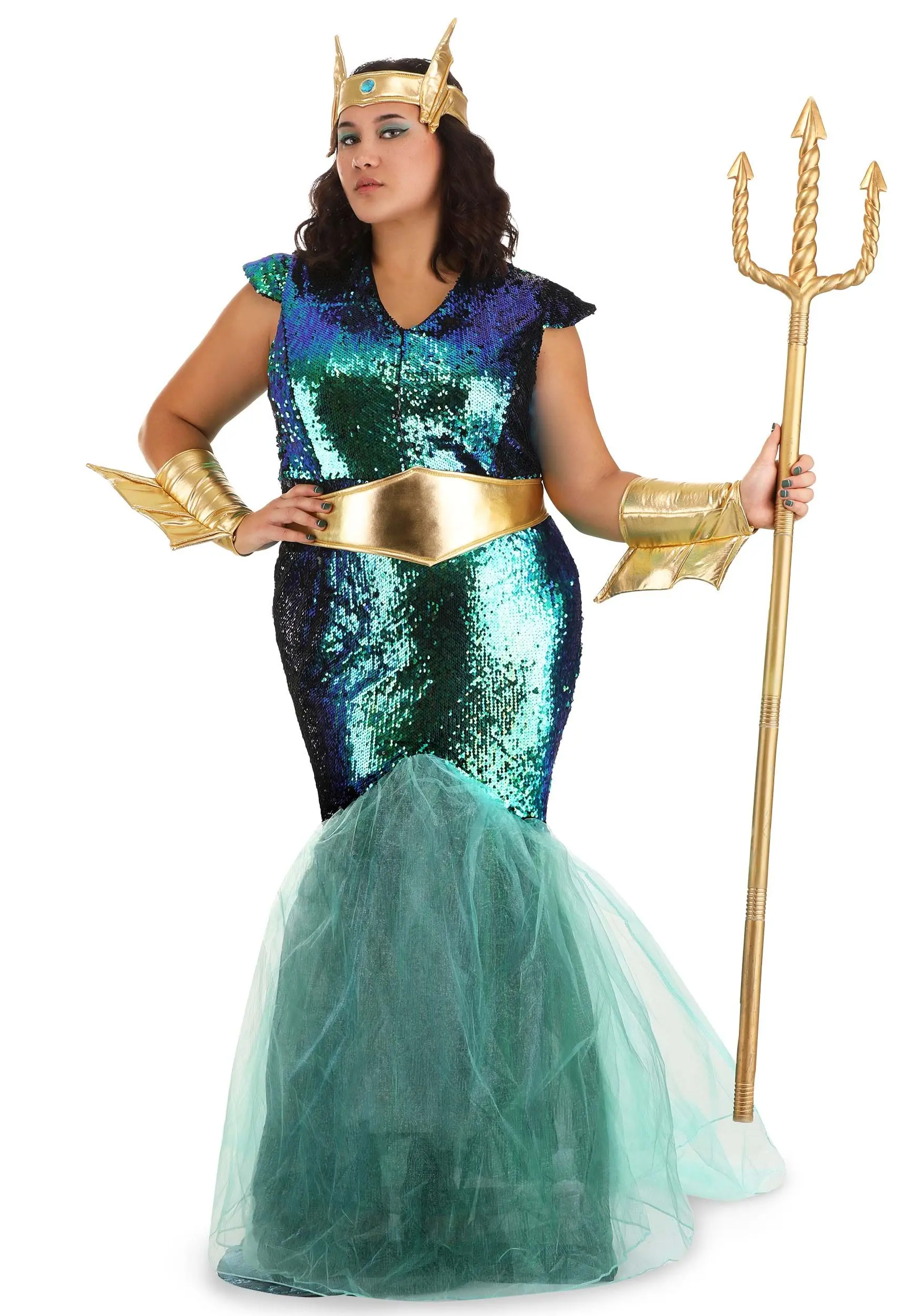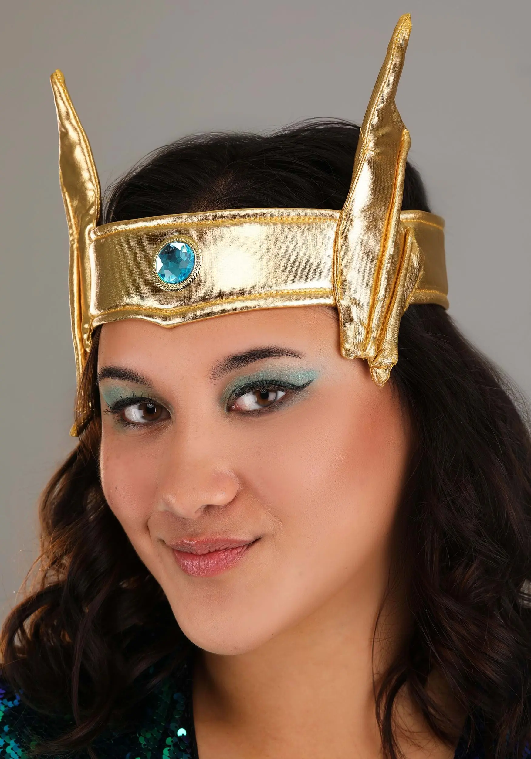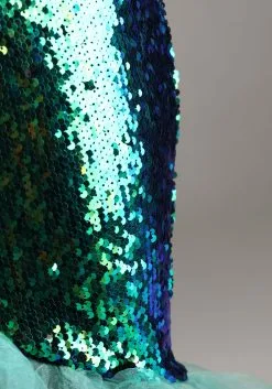 We’ve spoken to a historian who is an authority on the Mermaid Wars and he was able to give us an idea of what mermaid warriors looked like back then. Our designers worked day and night to recreate a costume that best depicts the mythological species’ attire. Our women’s sea siren costume is modeled after the historian’s explanation. You’ll be draped in sea foam colored sequins, gold wrist cuffs, a matching belt, and a jeweled headpiece. You’ll look legendary once you complete your transformation into sea siren royalty!