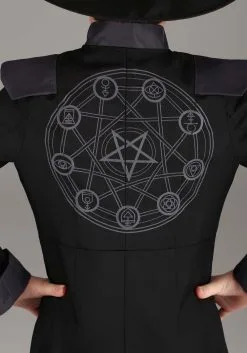 We must admit, our design team proved to be a bit magical themselves when they made this costume. It’s cleverly designed, expertly executed, and fit for an esteemed magic maker like your child. The look comprises a long black coat, with black buttons down the front and shiny shoulder caps, collar, and cuffs. A cone-shaped black hat sits perfectly atop your kiddo’s head. The magical designs on the hem and the striking image emblazoned on the back solidify your child’s appearance as the neighborhood’s most imposing and powerful warlock.Â
