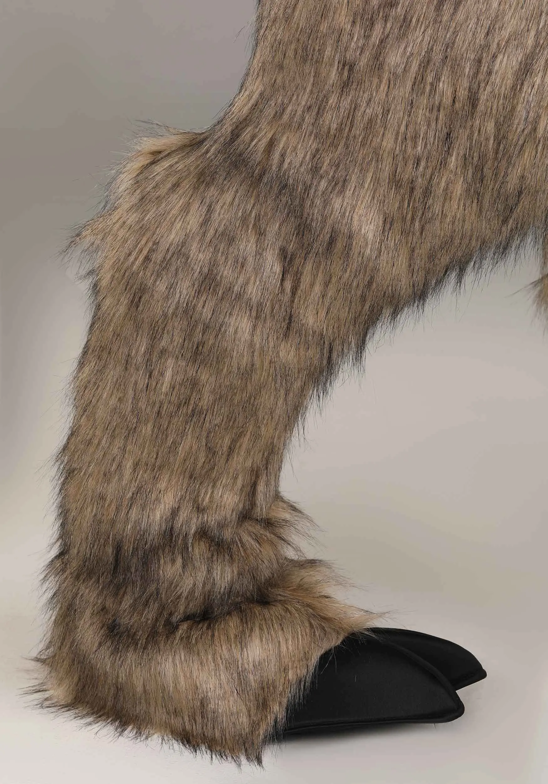 The legend is true: this exclusive Wendigo Adult Costume is the perfect scary outfit for Halloween! The jumpsuit has hook & loop fastener at the back and is made of soft brown long pile faux fur. A molded rib cage is attached to the chest to make it look like the creature is decaying while still alive. Shoe covers conceal your shoes and gloves with extra-long fingers will terrify your victims – er, your friends – as you reach in their direction. The hood/mask looks like a bleached skull and has attached antlers.