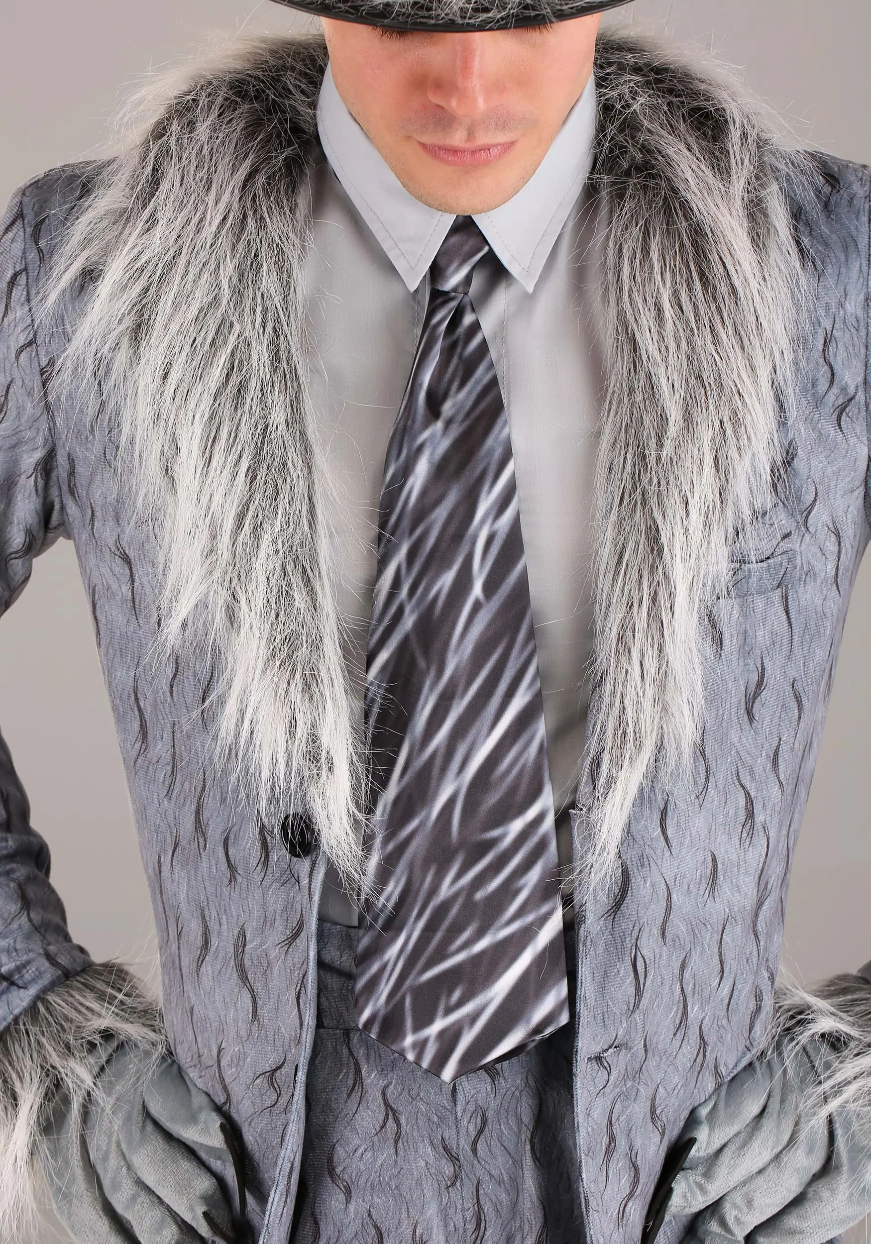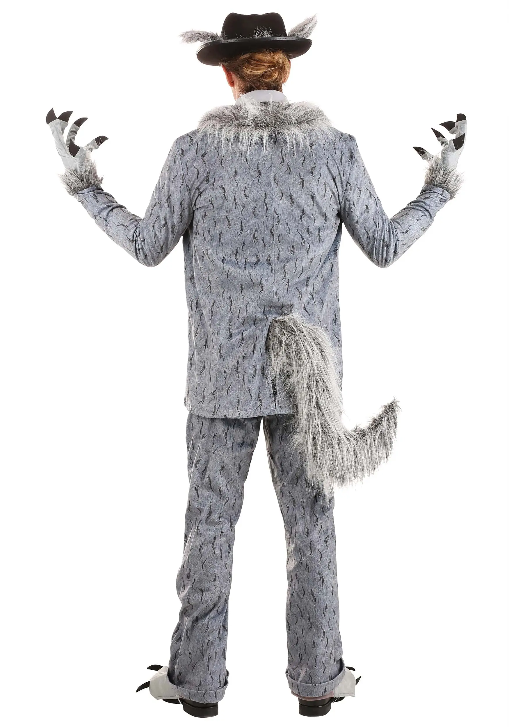 Upgrade your story with this Woodsy Bad Wolf costume. This is a Made By Us design that had our team howling! It takes the classic look of wolfy faux fur and turns you into one cool cat—er… we mean wolf. The ensemble includes a gray-blue shirt, wide necktie, and a hat that features attached ears. The pants are printed to look like timberwolf fur and the matching jacket has faux fur along the neck and lapel. A pair of gloves and matching shoe covers give you the claws you need to rake in the win.