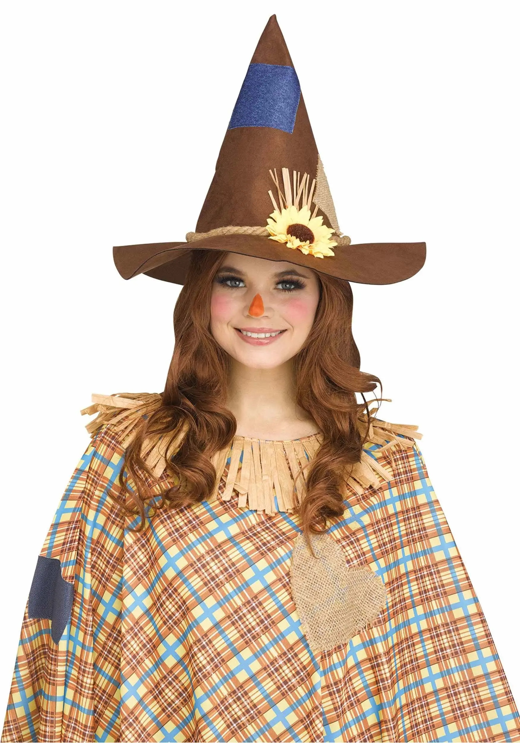 This Sweet Scarecrow Hat is a brown cone-shaped cap with a wide brim. There are different colored patches added to the hat, making it even more adorable. The cherry on top, so to speak, is the lovely sunflower on the front of the accessory. Once you complete your scarecrow transformation with this sweet and stylish hat, you’ll be hearing more “awes” and less “caws”.
