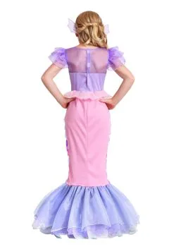 This sparkling mermaid costume is Made by Us. It’s bright, colorful and looks like it’s straight out of a fairy tale illustration. Our in-house designers put together a mermaid cut dress. The skirt is amazing with giant multi-colored sequins making up the scales. The hem has layered tulle to make up the fins. Kids will feel extra special in the top with its sparkly sequin shells, ruffly sleeves, and a sparkly aquatic colored bodice. It’s easy to slip into this look, it simply secures with hook and loop fasteners.Â