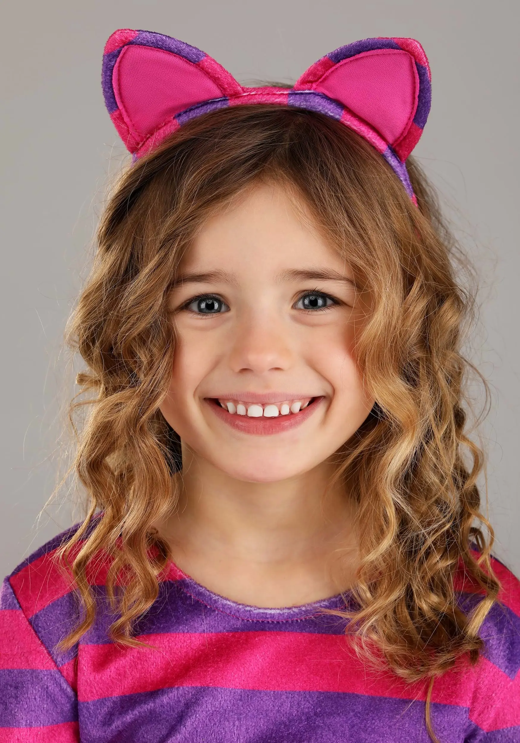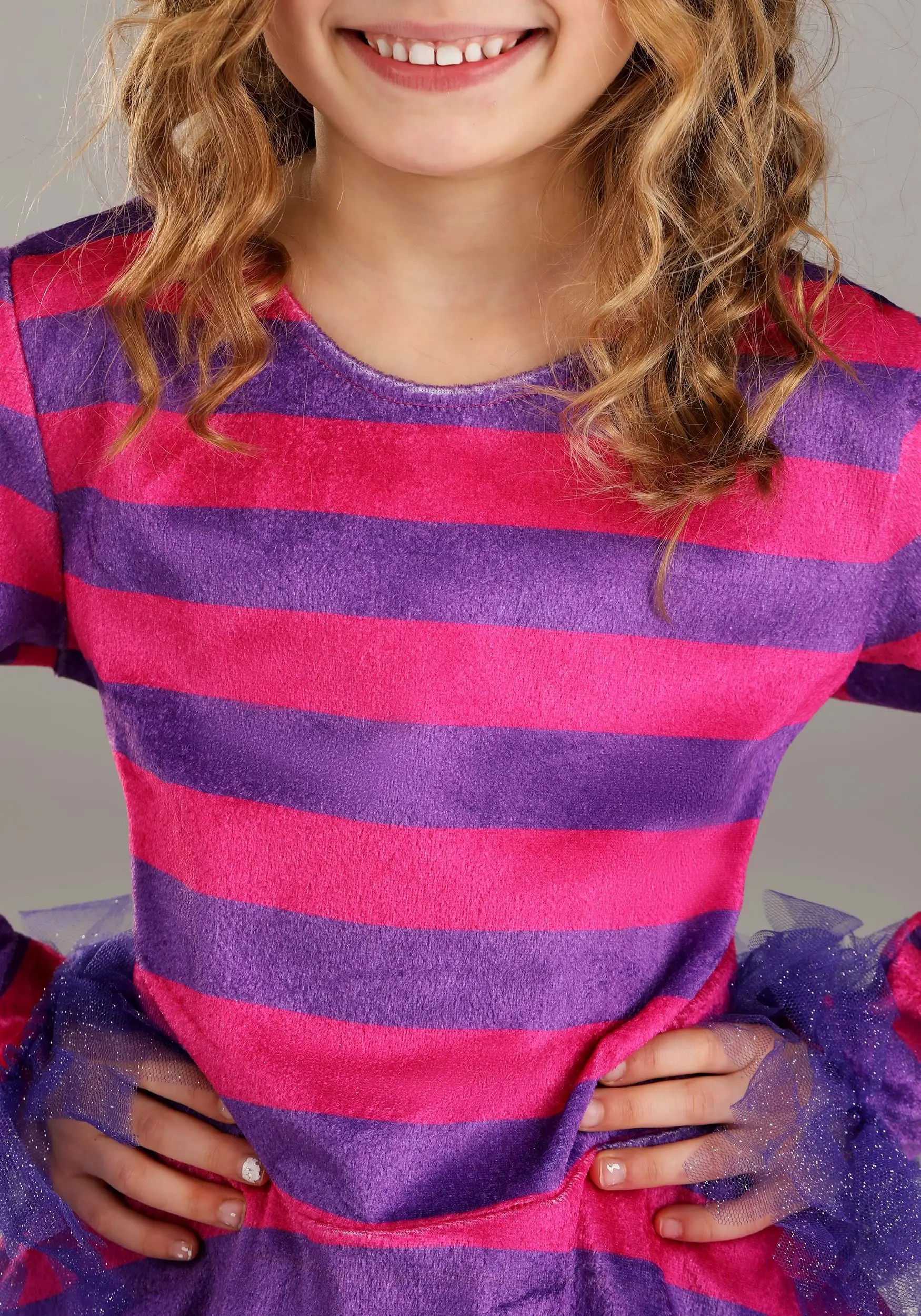 If your bundle of chaos loves to quote a certain mad cat, this Mischievous Cheshire Cat costume is the perfect thing! This is a Made By Us design from our in-house team and starts with a whimsical pink and purple dress styled after Cheshire’s classic appearance. Tulle fringe at the cuffs, hemline, tip of the hook-and-loop-attached tail, and ankle cuffs create the silhouette of a fuzzy feline while the fabric headband tops everything off with a pair of matching ears. All that is left is your tyke creating an amazing memory as this chaotic character.