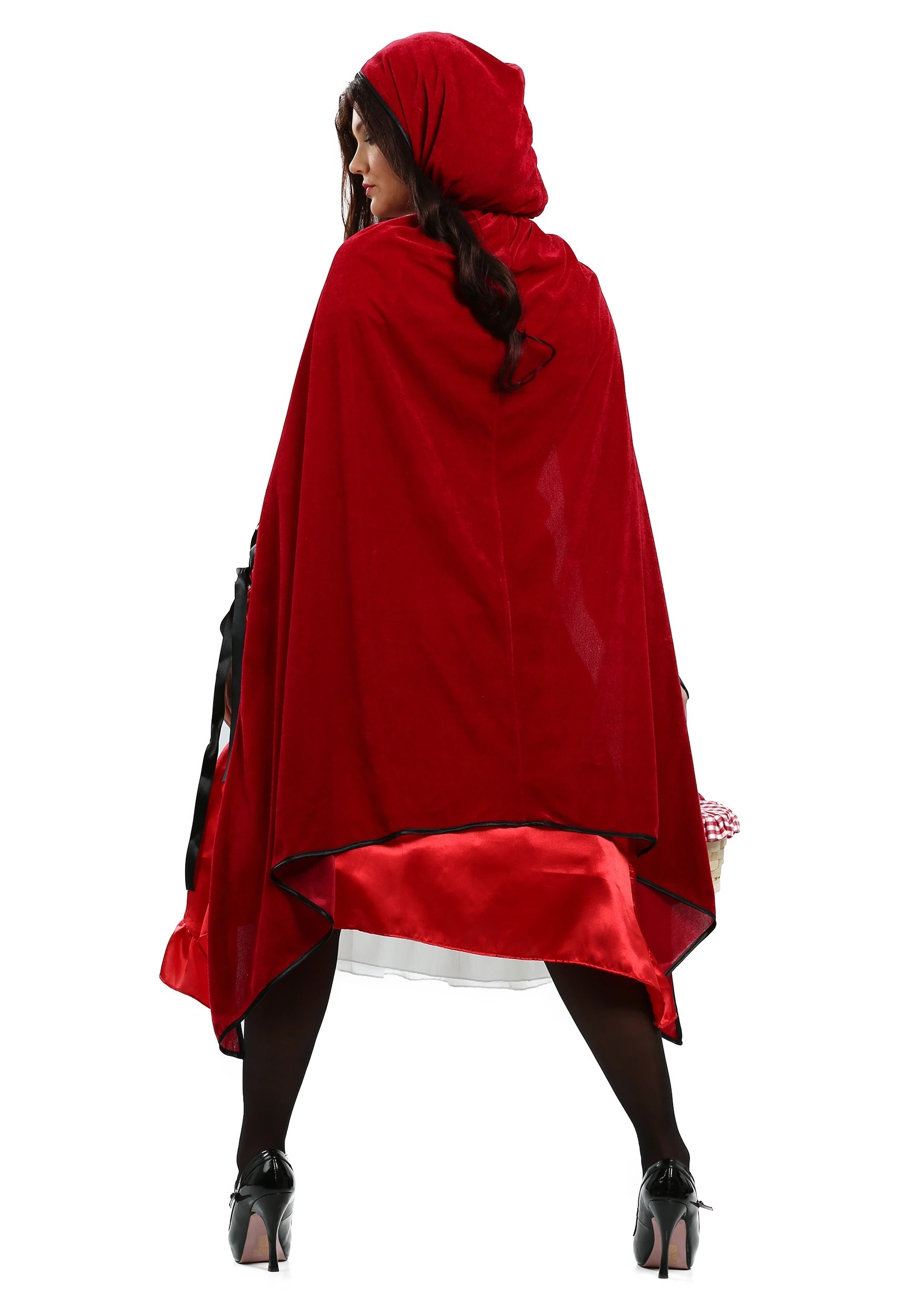 This Fairytale Red Riding Hood costume combines classic with sassy! It’s a red satin dress that has ruffles along the skirt. A white underskirt peeks out from underneath to add a traditional look from the fairytale. And, of course, no Little Red Riding Hood costume would be complete without a hood! This costume comes with a red cape with an attached hood that fits around the shoulders. Once you have it on, all you need to do is load up your basket full of goodies and get the drop on the dastardly wolf before he tries to eat your grandma! (You’d better hurry, girlfriend!)