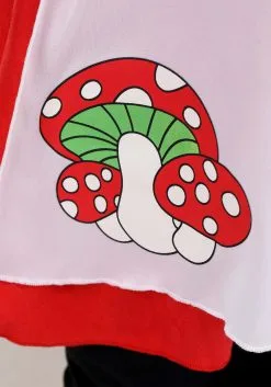 Our in-house designers put their hearts into this piece and created the one-piece dress with an attached apron and detailed bodice with printed lacing. The ruffled sleeves are accented with ribbons and add old-world charm to this sweet ensemble. The apron is decorated with toadstools, matching the adorable mushroom cap. Soft to the touch, the mushroom hat is lightly stuffed to keep it’s shape.