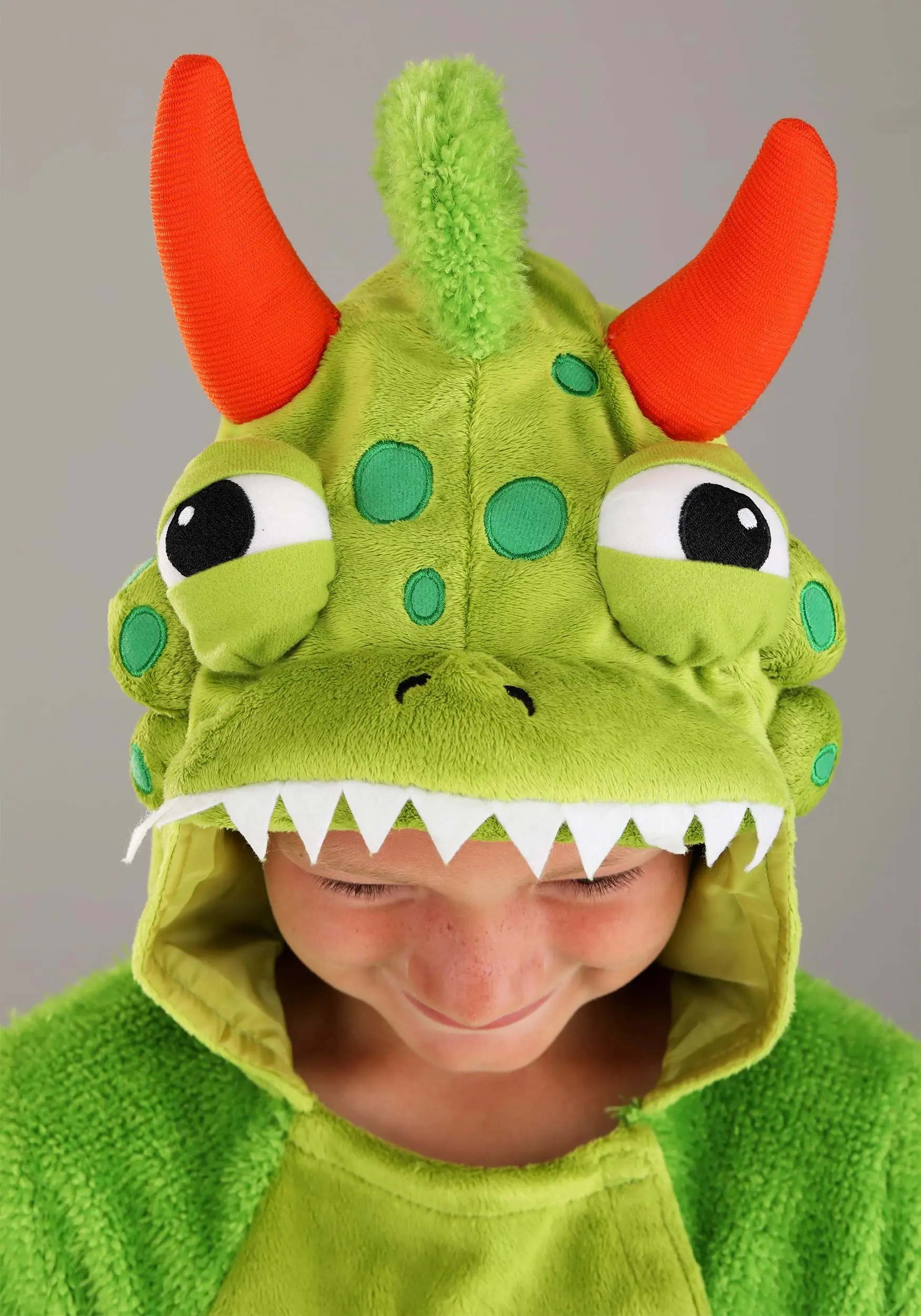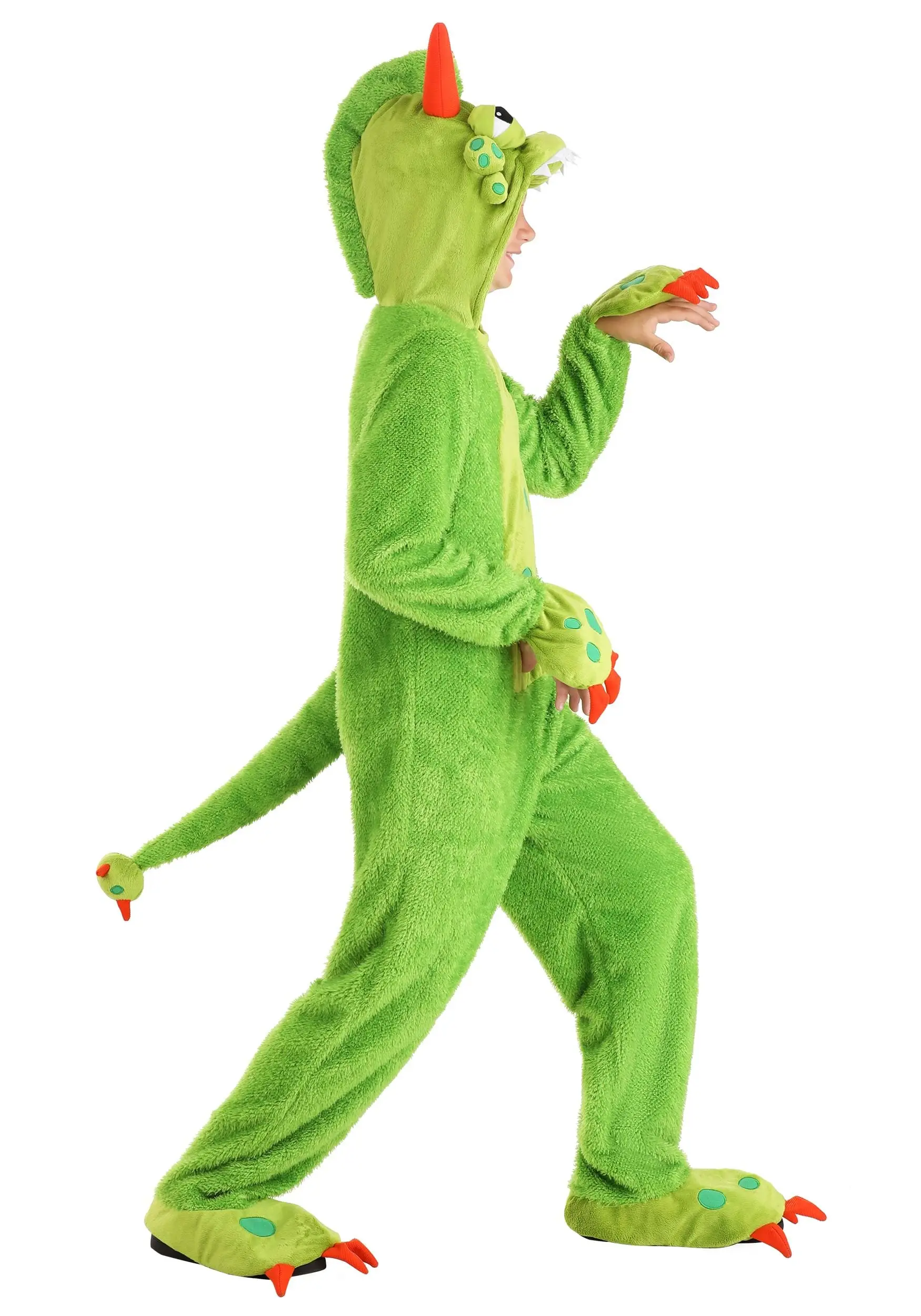 Be a scary monster or a scarily hilarious monster in this Little Green Monster Kid’s Costume! The exclusive, one-piece outfit is made of soft green velour, features a chest panel decorated with green polka dots, and has a stuffed tail sewn to its seat. Stuffed monster paws with orange felt claws are sewn to the suit’s wrists. The suit comes with matching foot covers. Pull up the hood to reveal monster eyes and ears as well as a row of front teeth above the face opening.Â